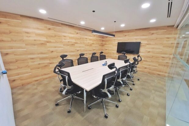 Inside, the space is designed with a clean, modern touch—bright private offices, glass-walled meeting rooms, and inviting breakout corners that provide a balance of focus and collaboration. Warm tones and greenery bring a refreshing energy to the environment, creating a setting that feels both productive and welcoming.