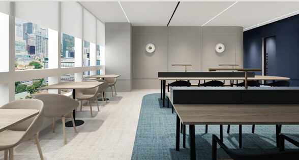 Located on Level 29 of Prudential Tower, this workspace is just a 2-minute walk from Telok Ayer MRT and 5 minutes from Raffles Place MRT. The interior features calming shades of blue, creating a stylish yet comfortable environment for both focus and collaboration—paired with sweeping views that stretch across Marina Bay Sands and Chinatown.