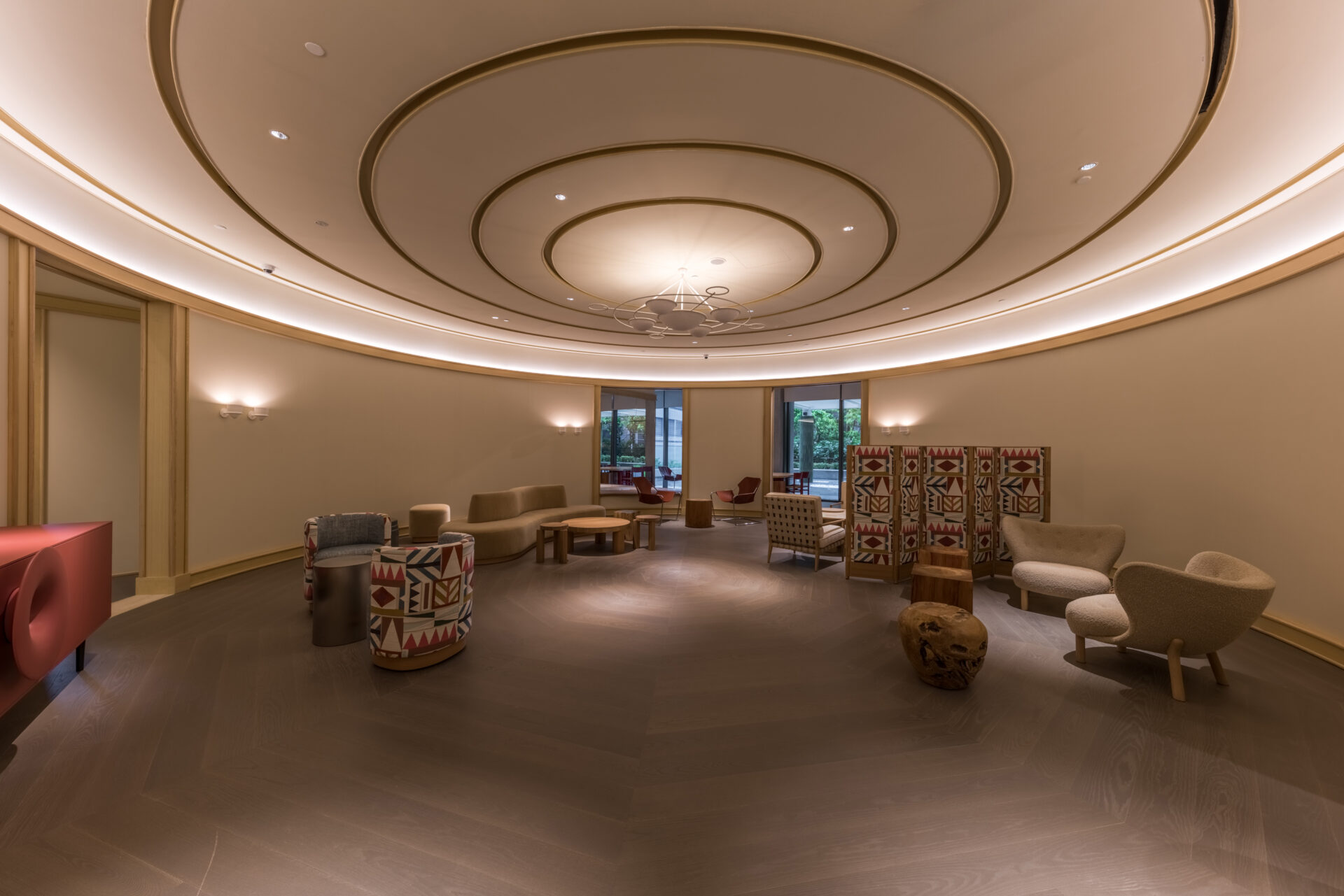 Designed by the renowned international design studio HASSELL, the interior exudes refined elegance, paying homage to the building’s designer, renowned architect Toyo Ito. Decorative patterns of the meeting rooms and common lounges adding a unique essence to the warm-toned space illuminated by soft lighting.