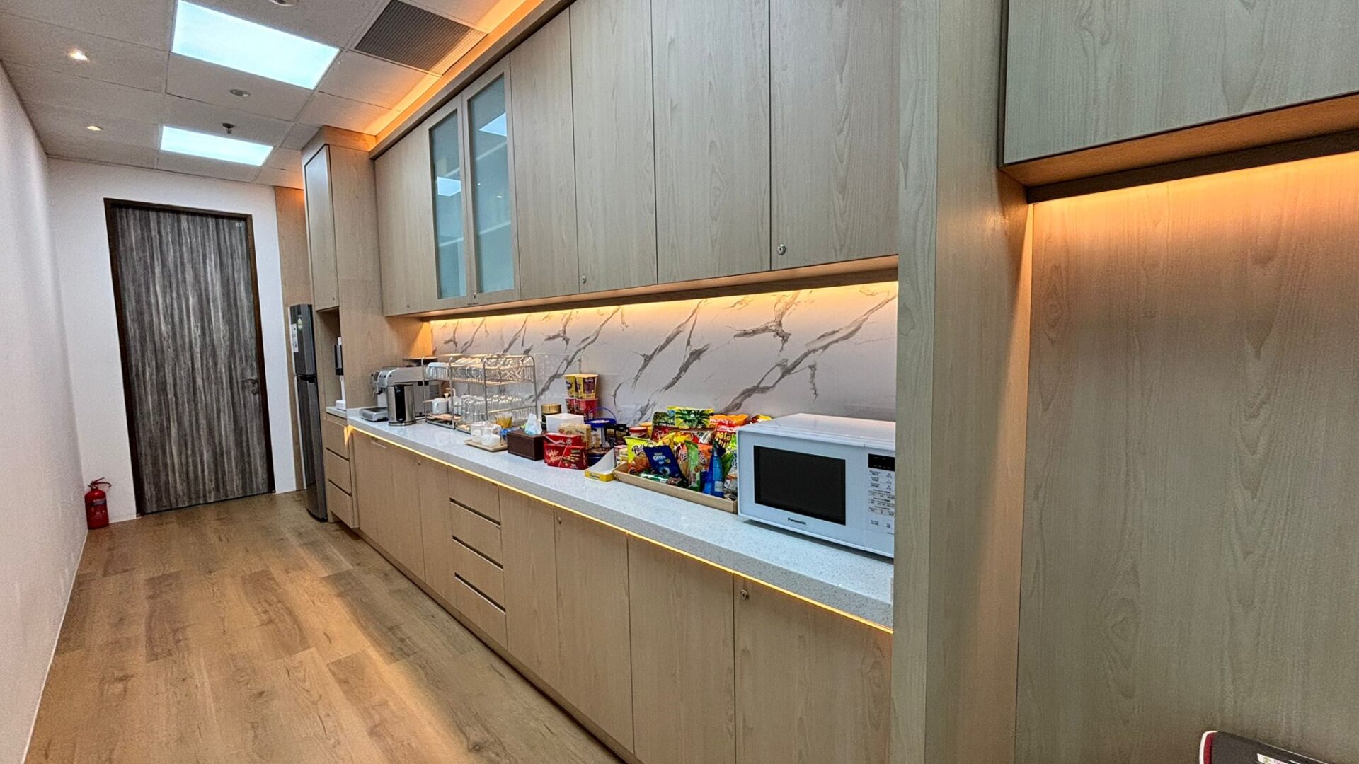 Step inside to find a clean and professional environment, thoughtfully designed with glass-walled meeting rooms, lush green feature walls, and cozy seating nooks that bring a refreshing, natural touch to the workspace. Private offices enjoy panoramic city and Kallang Basin views, offering a calm, focused setting ideal for deep work.